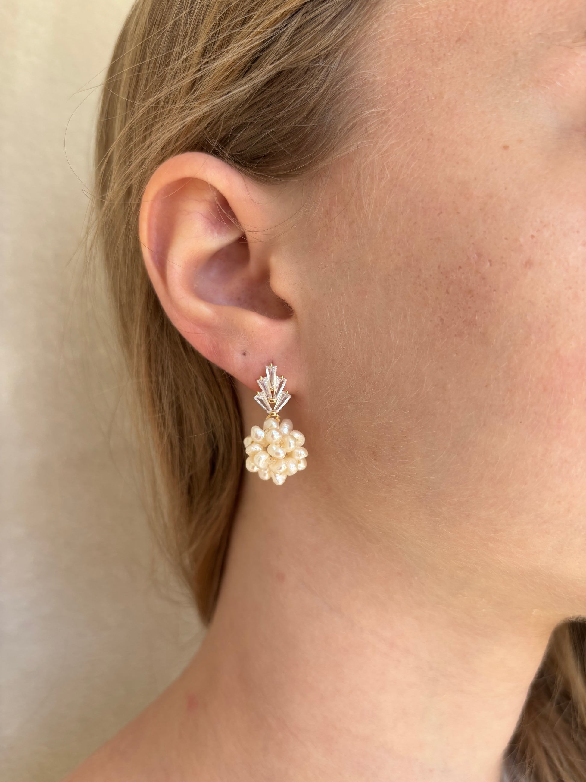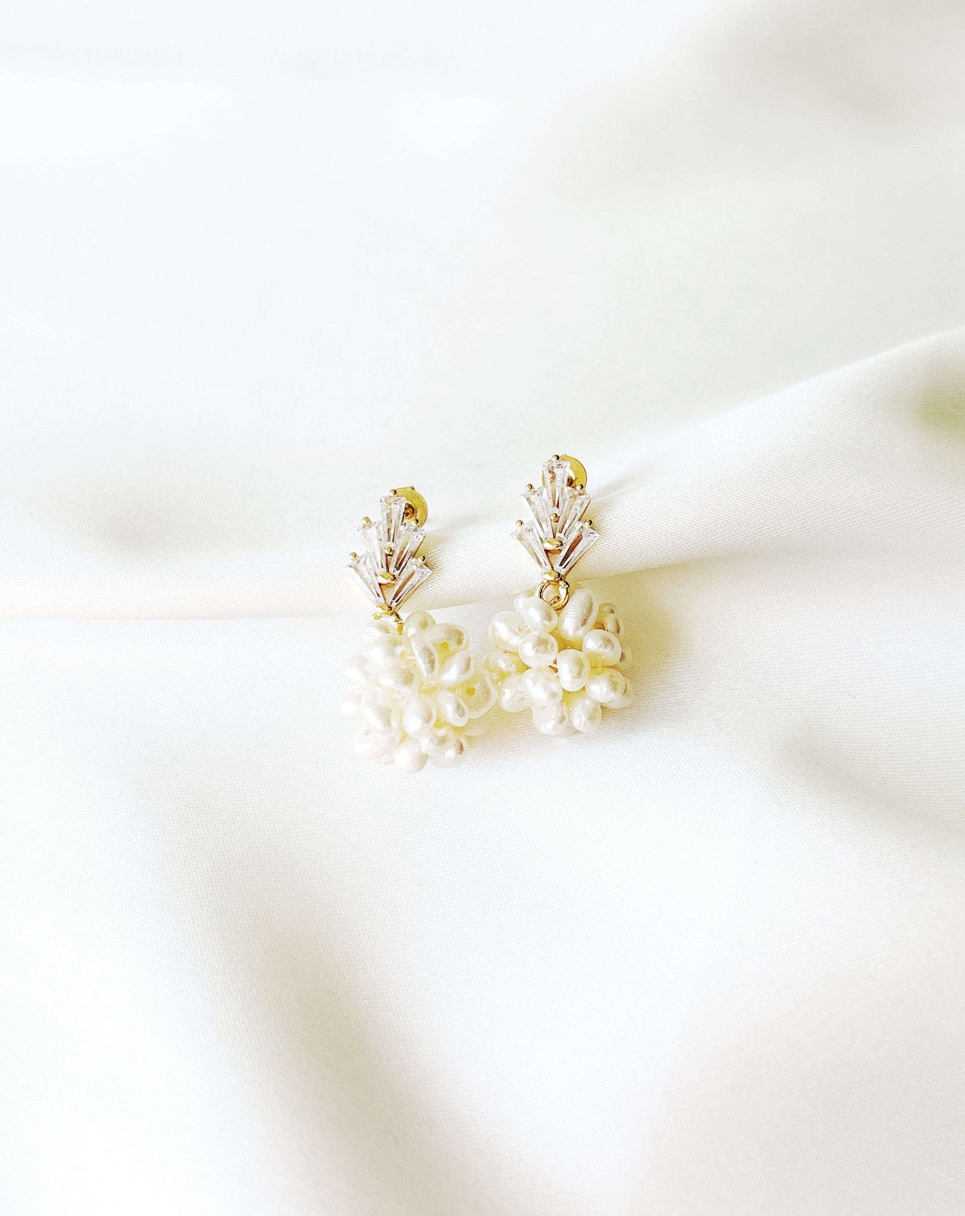• 14k gold plated cz cluster stud with pearl cluster drop
