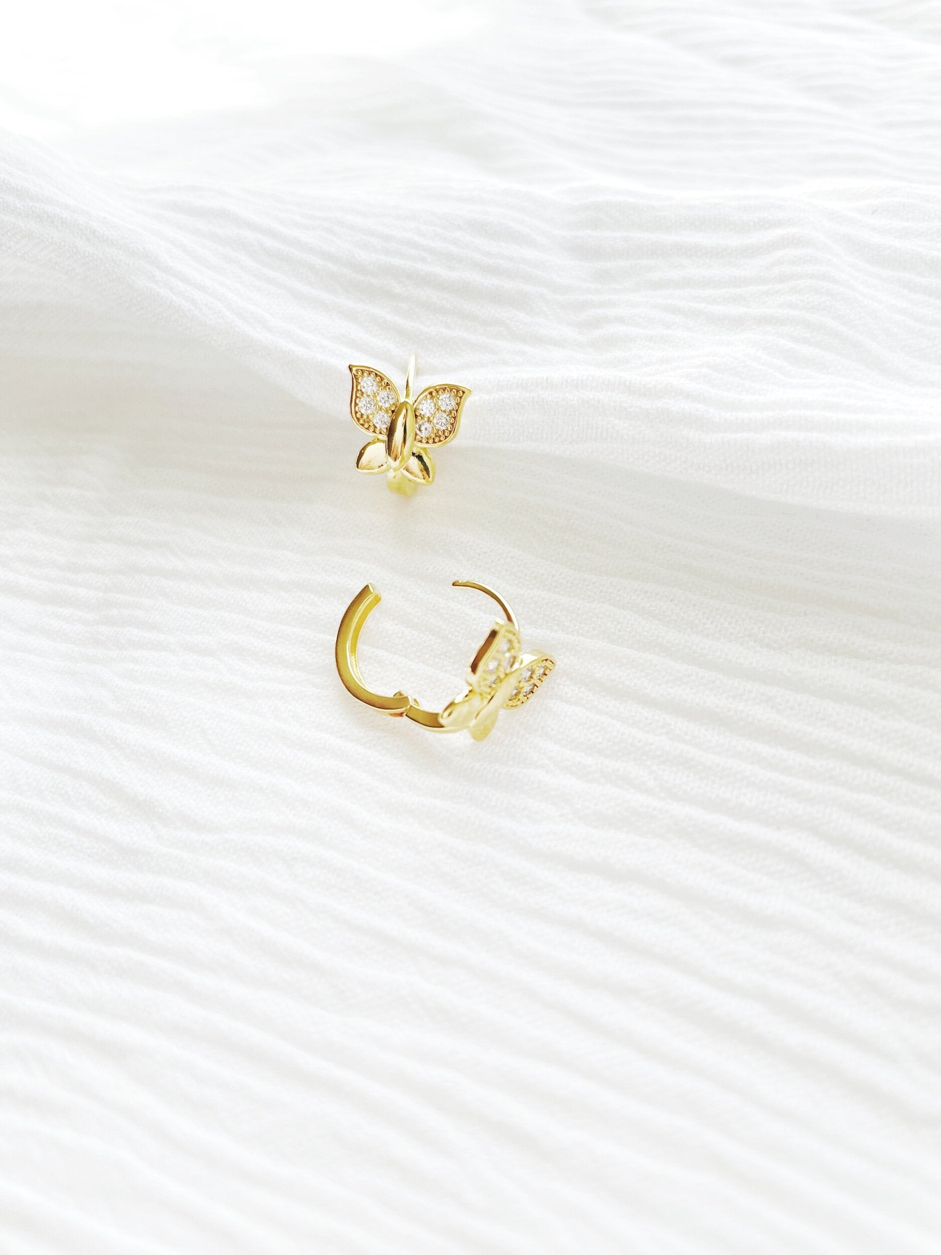 • 14K gold plated butterfly huggies