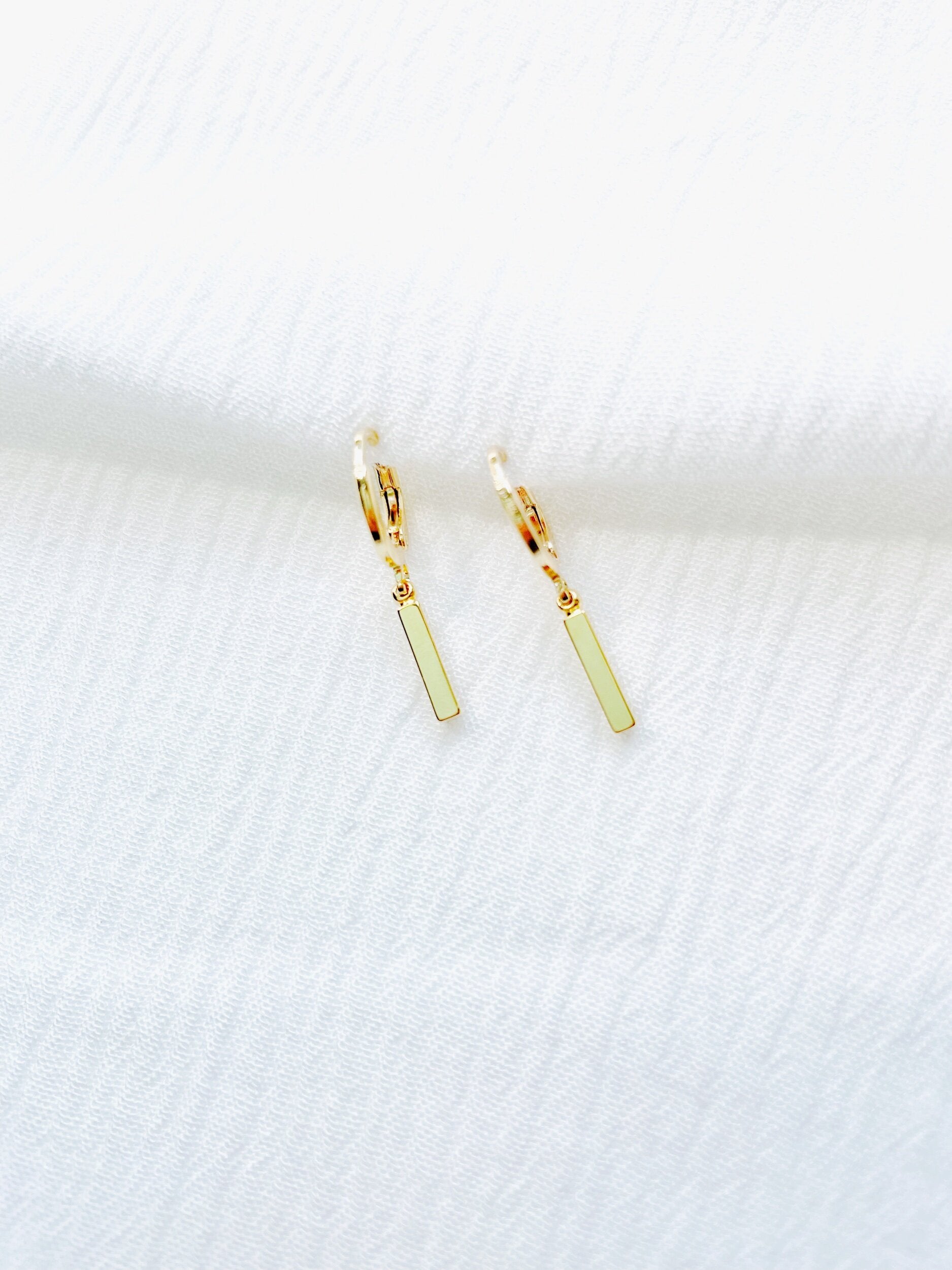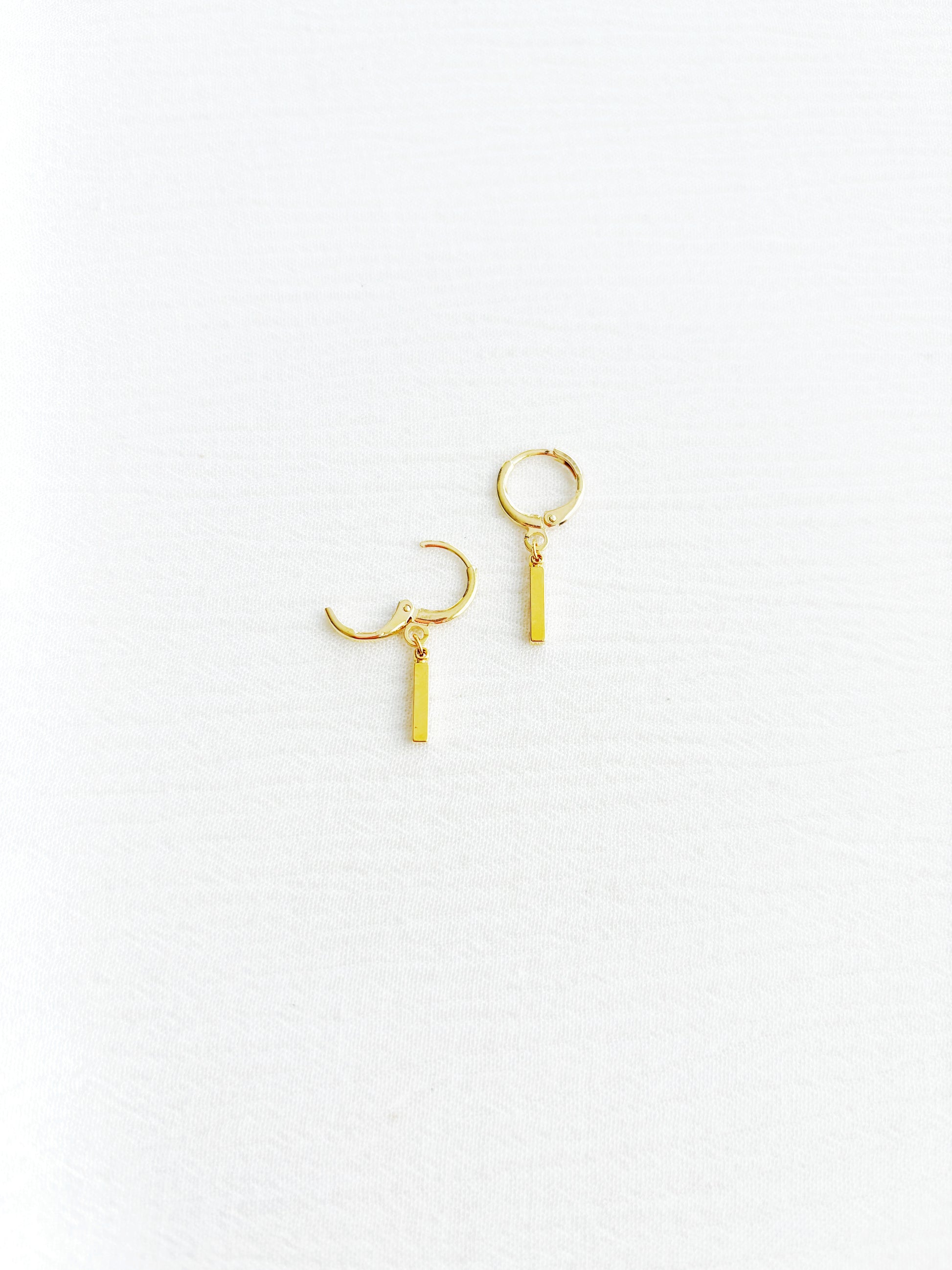 • 14K gold plated huggies + bar drops