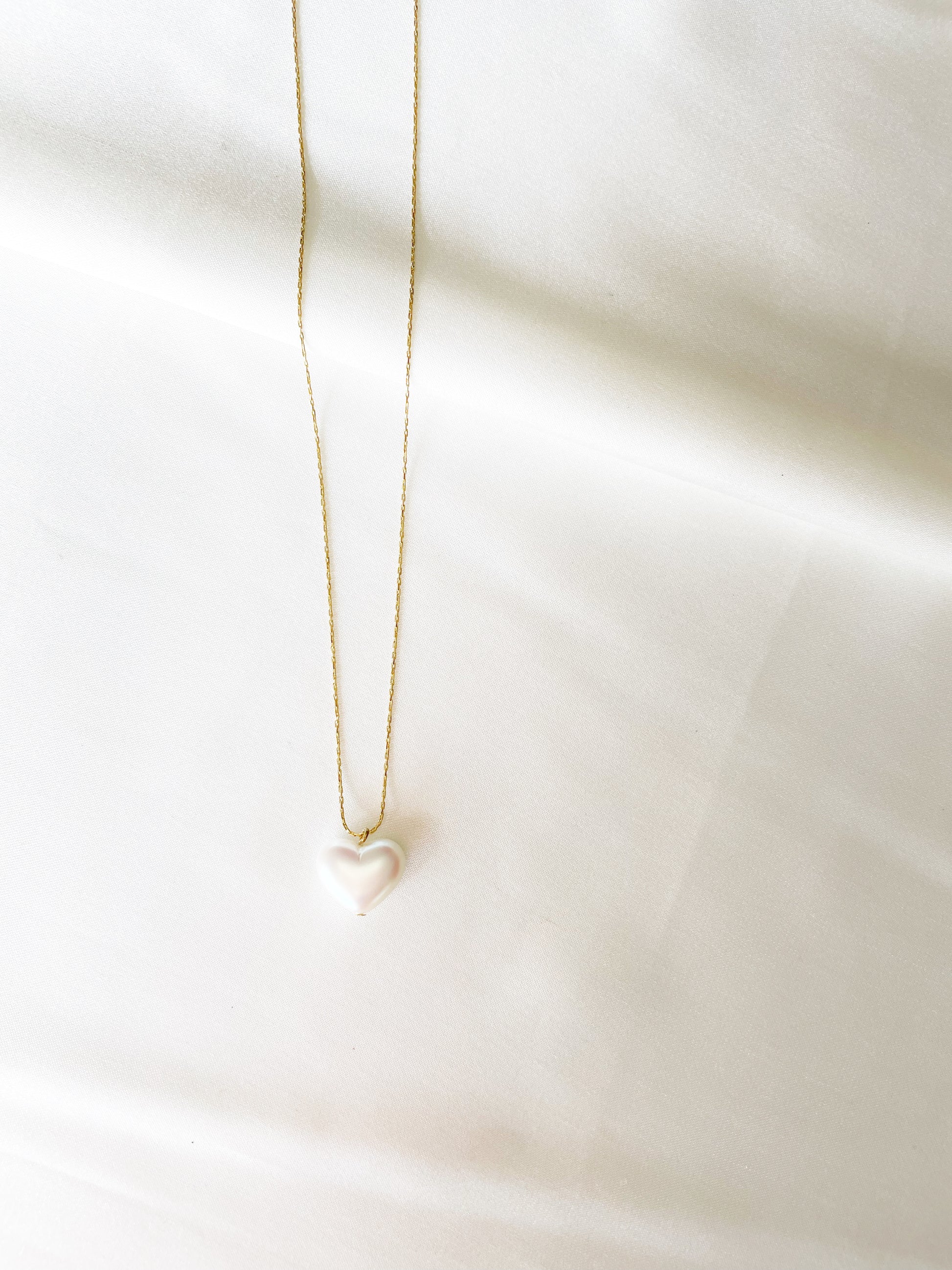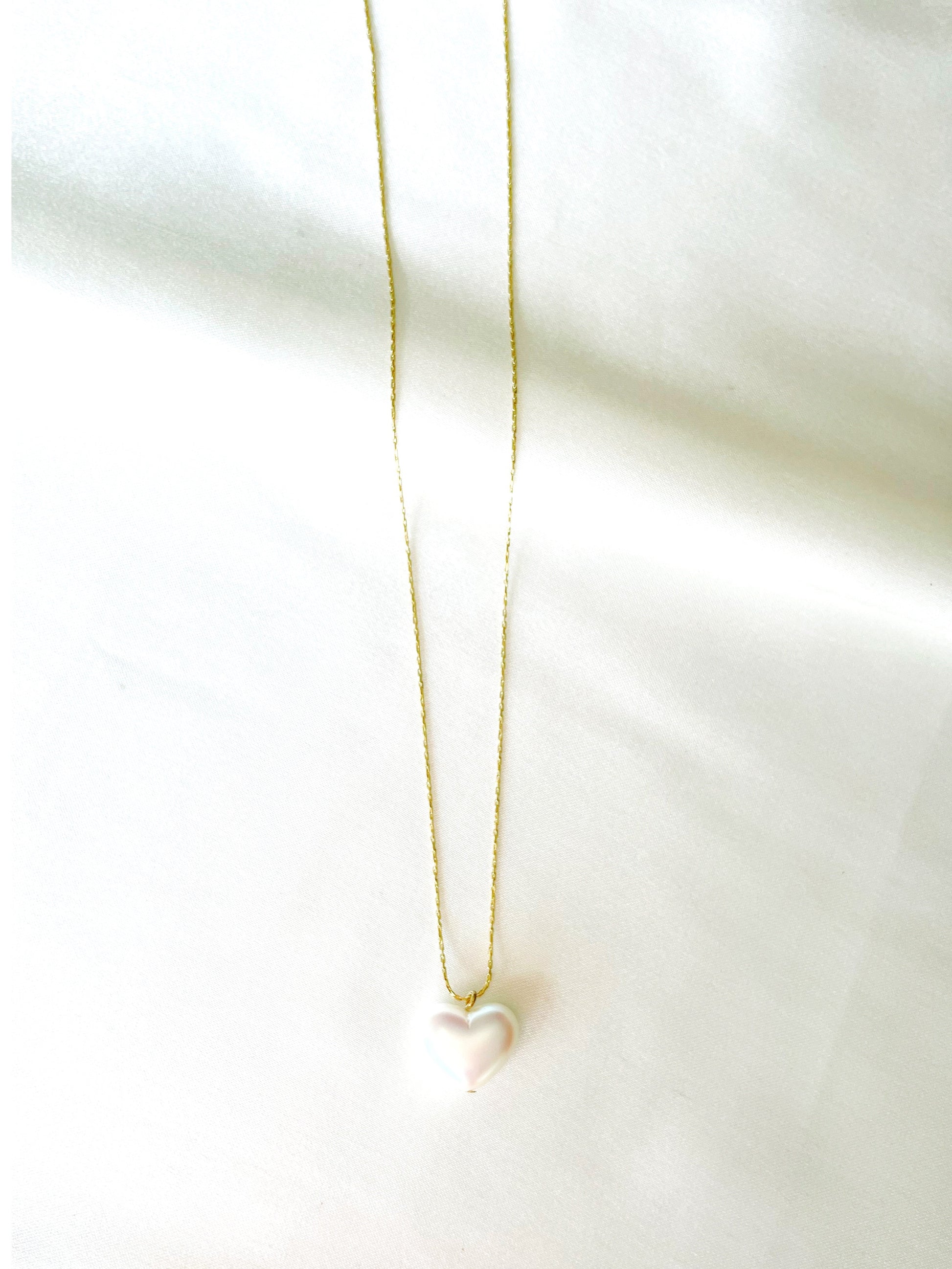 • 14k gold plated necklace with heart pearl charm