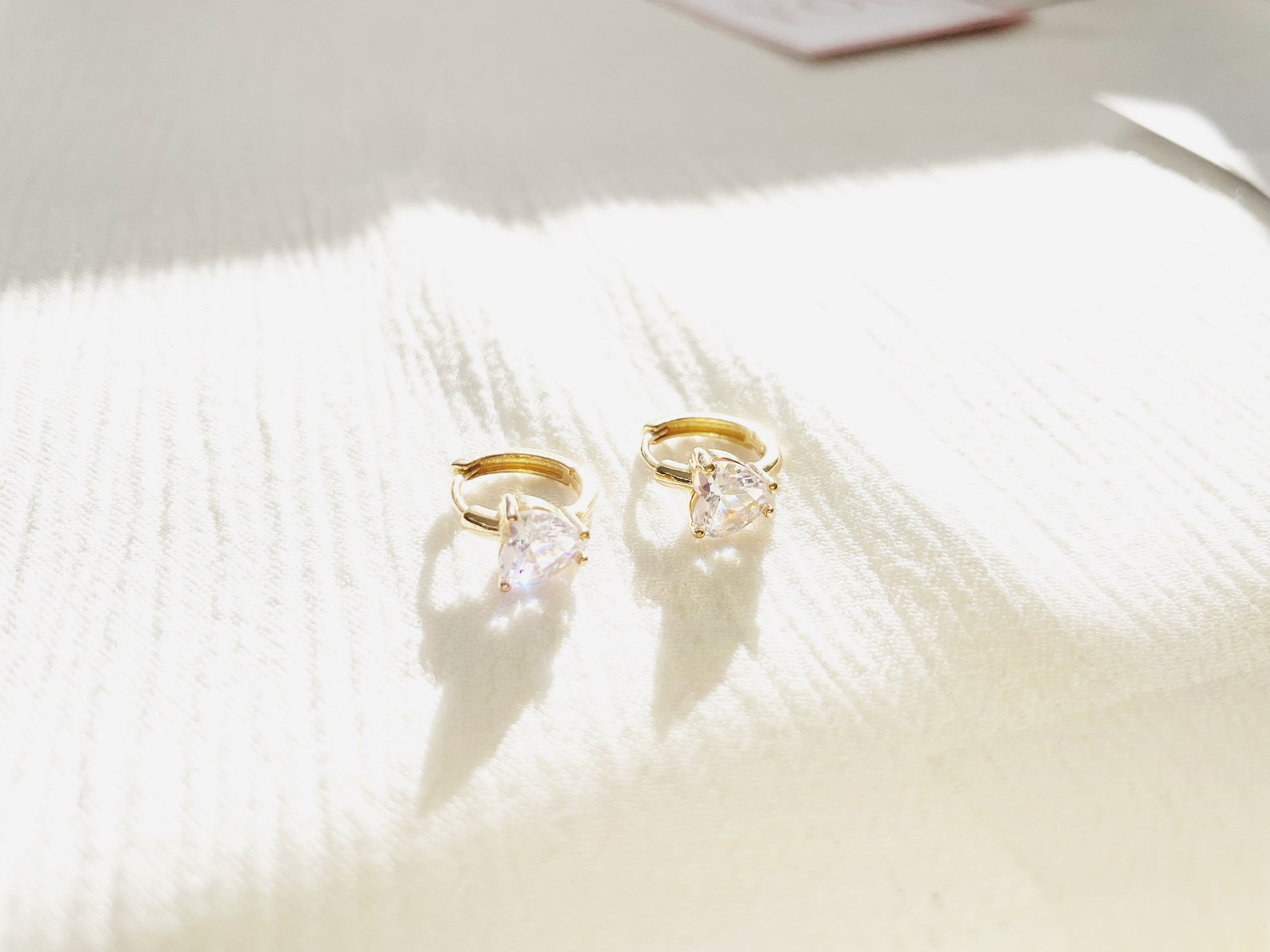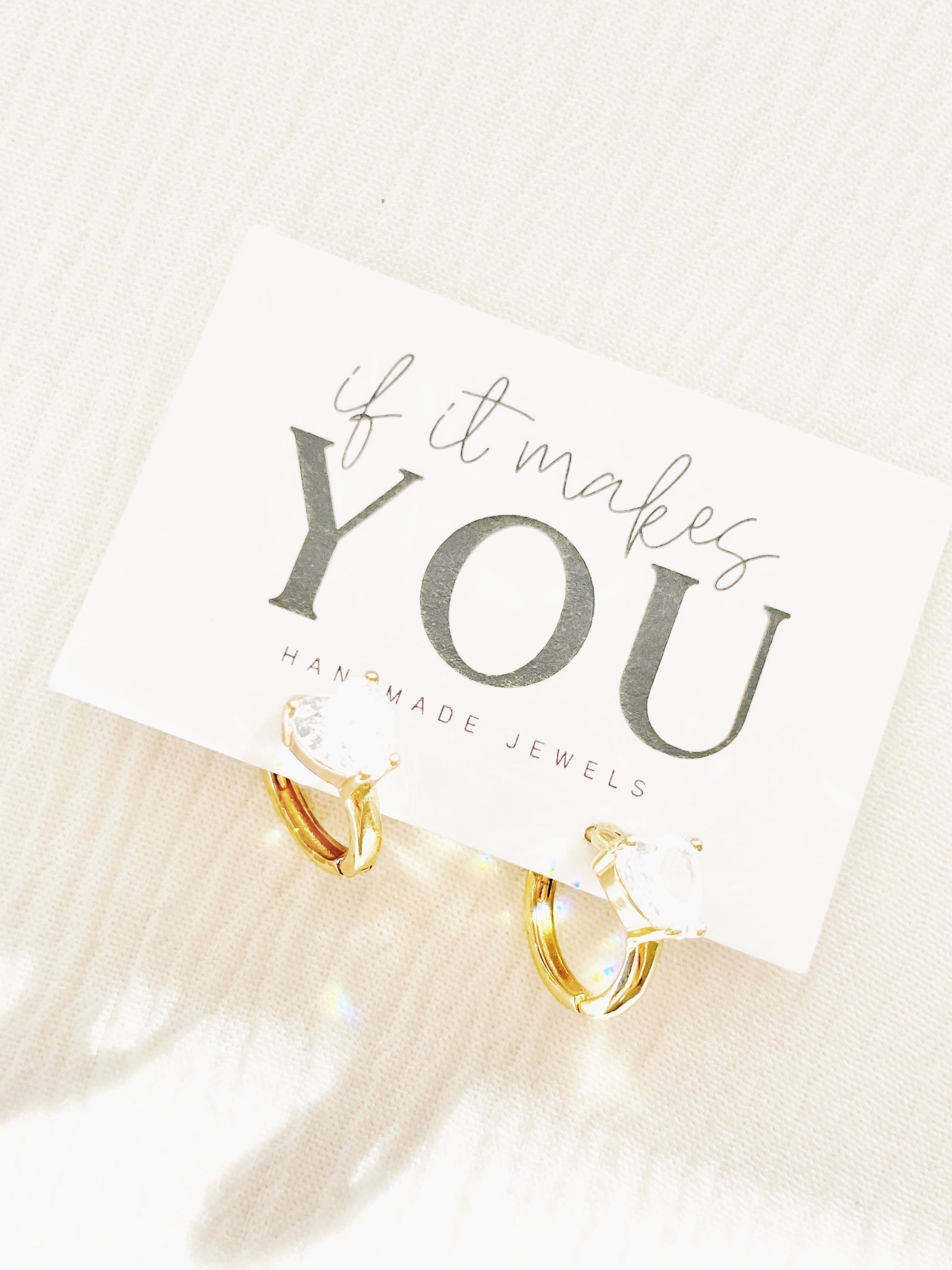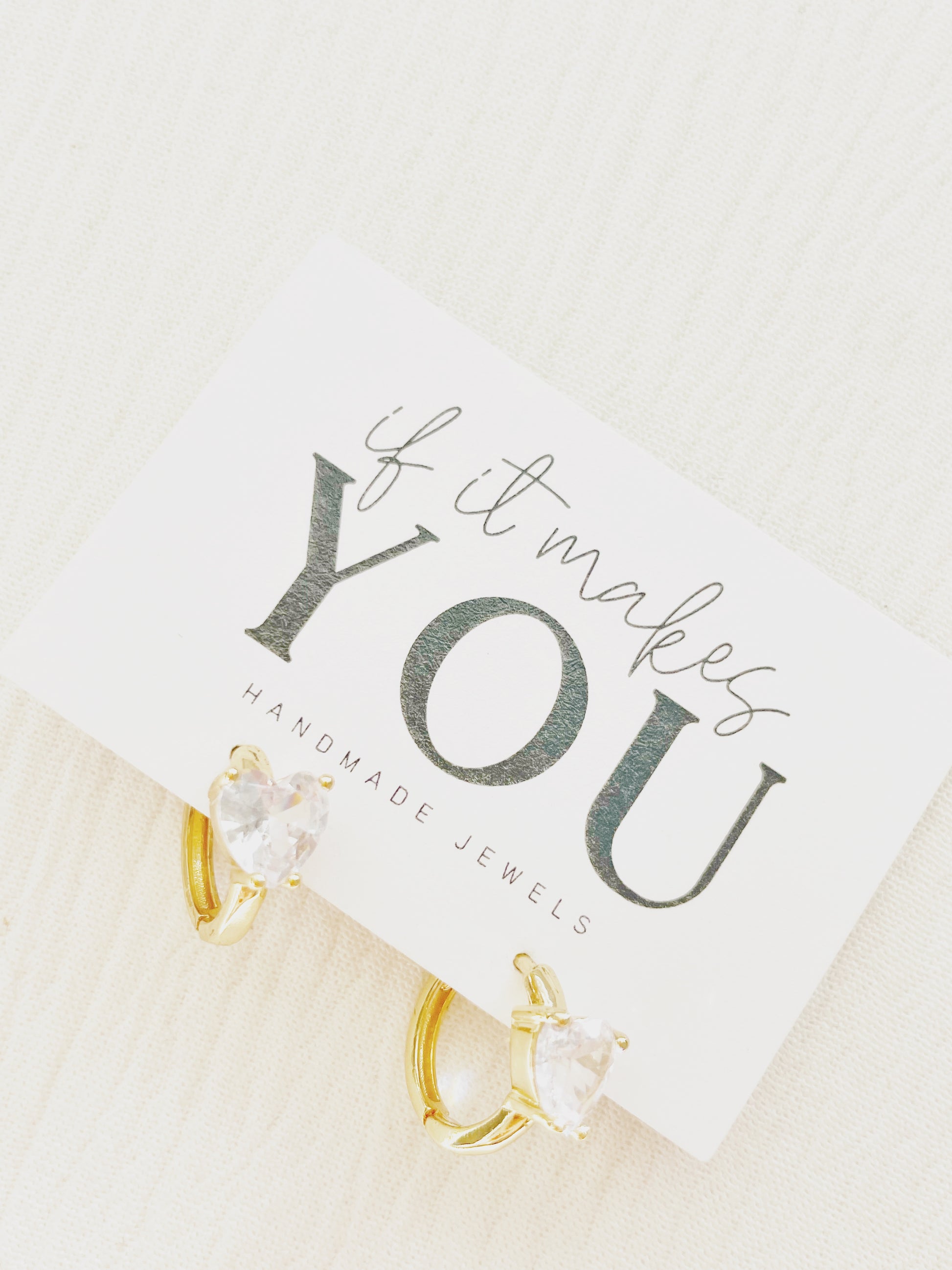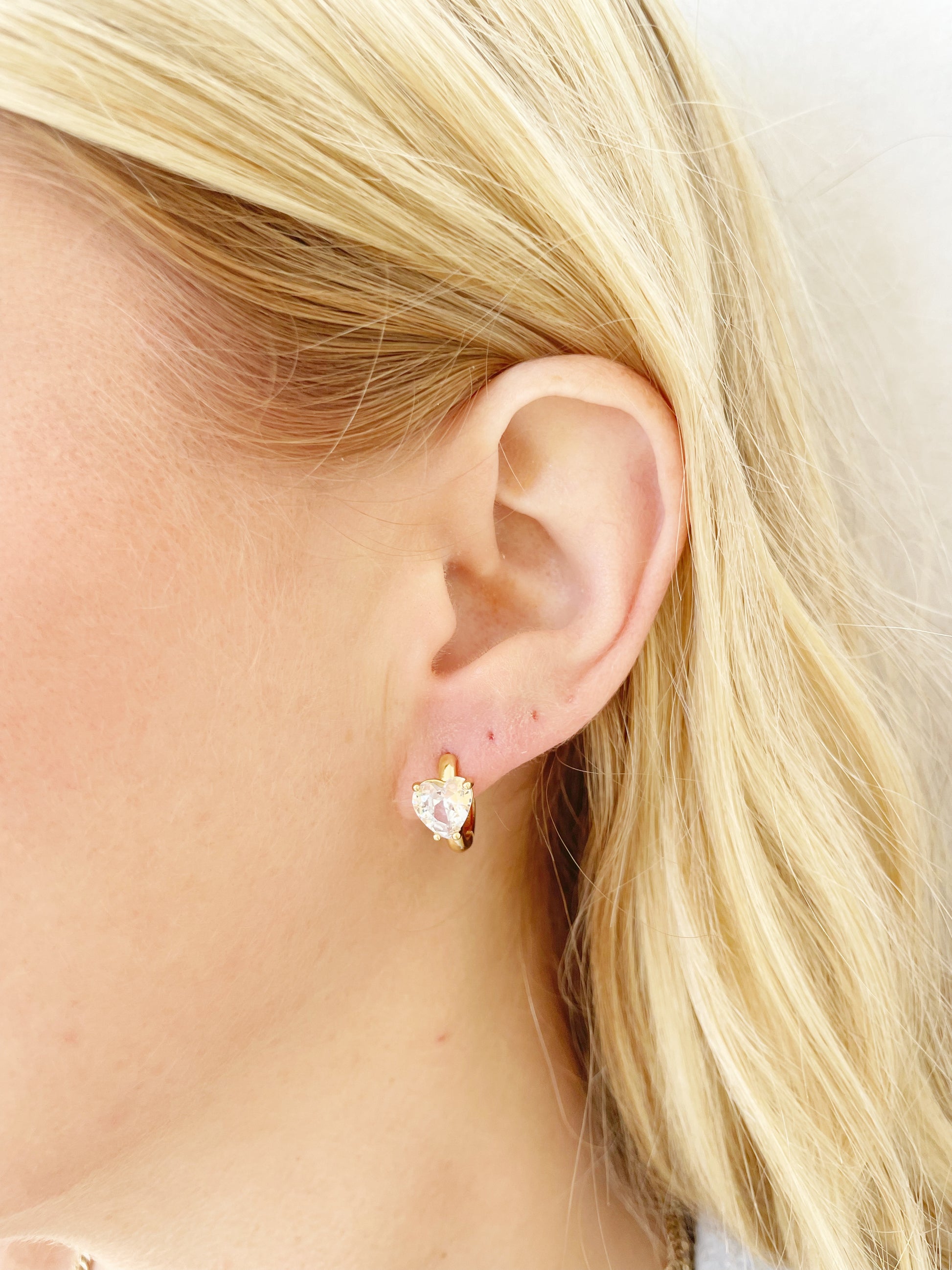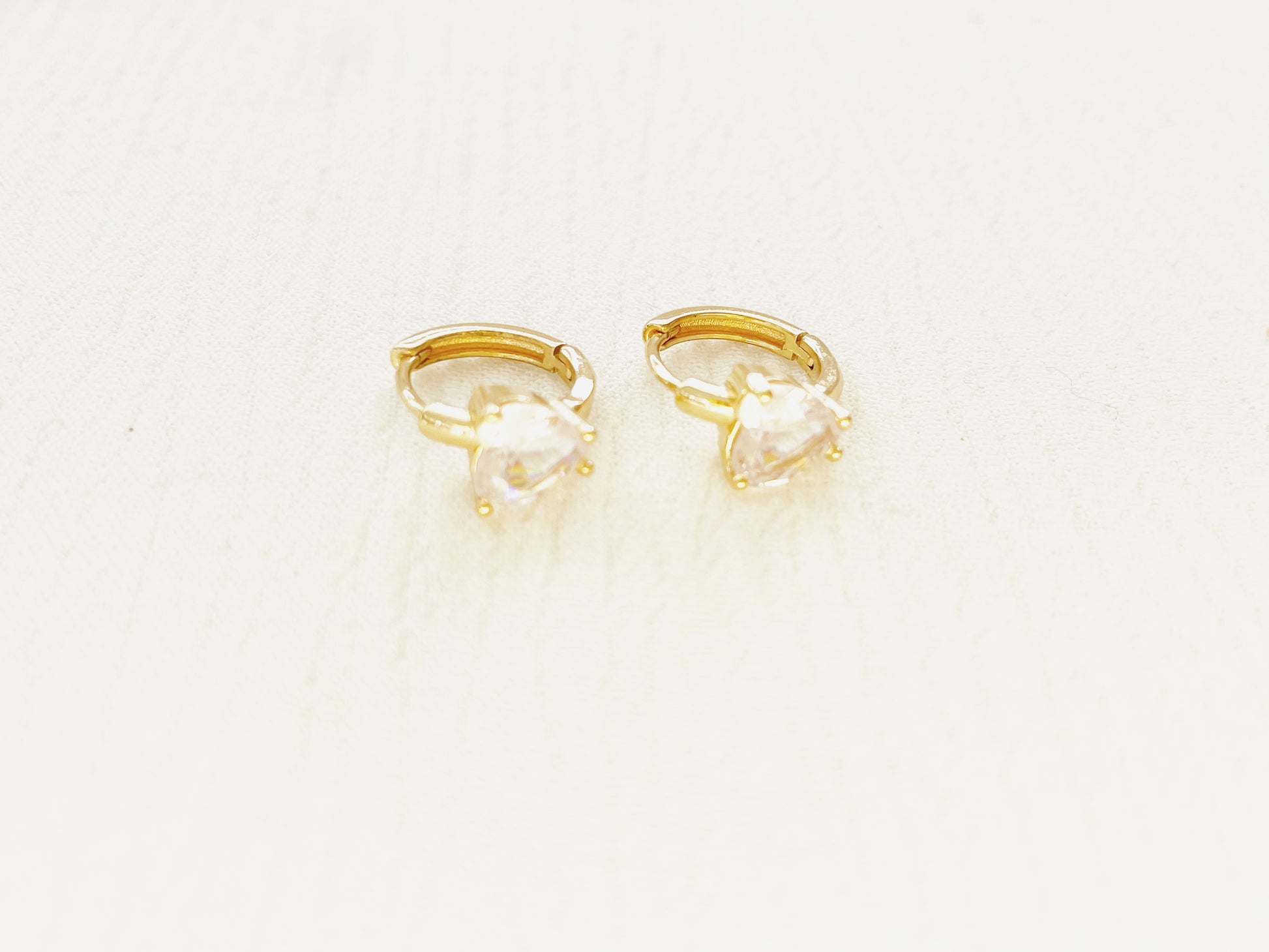 • 14K GOLD PLATED HUGGIES WITH DIAMOND HEART