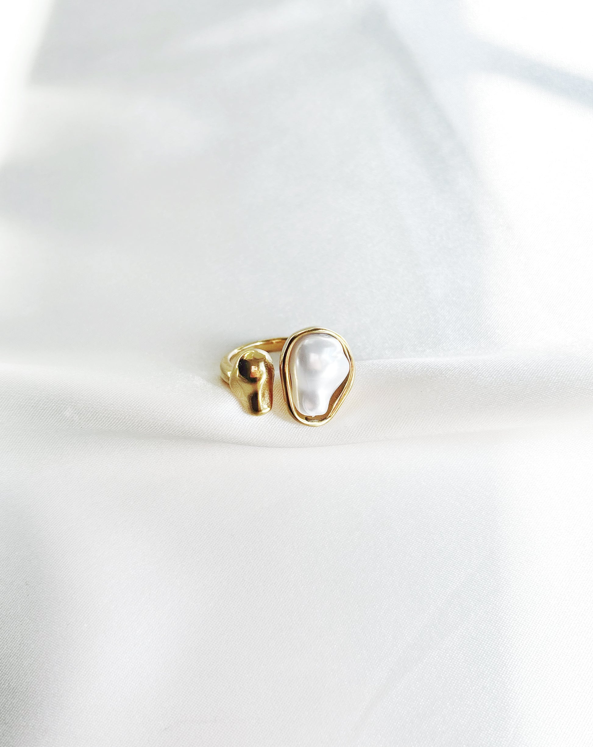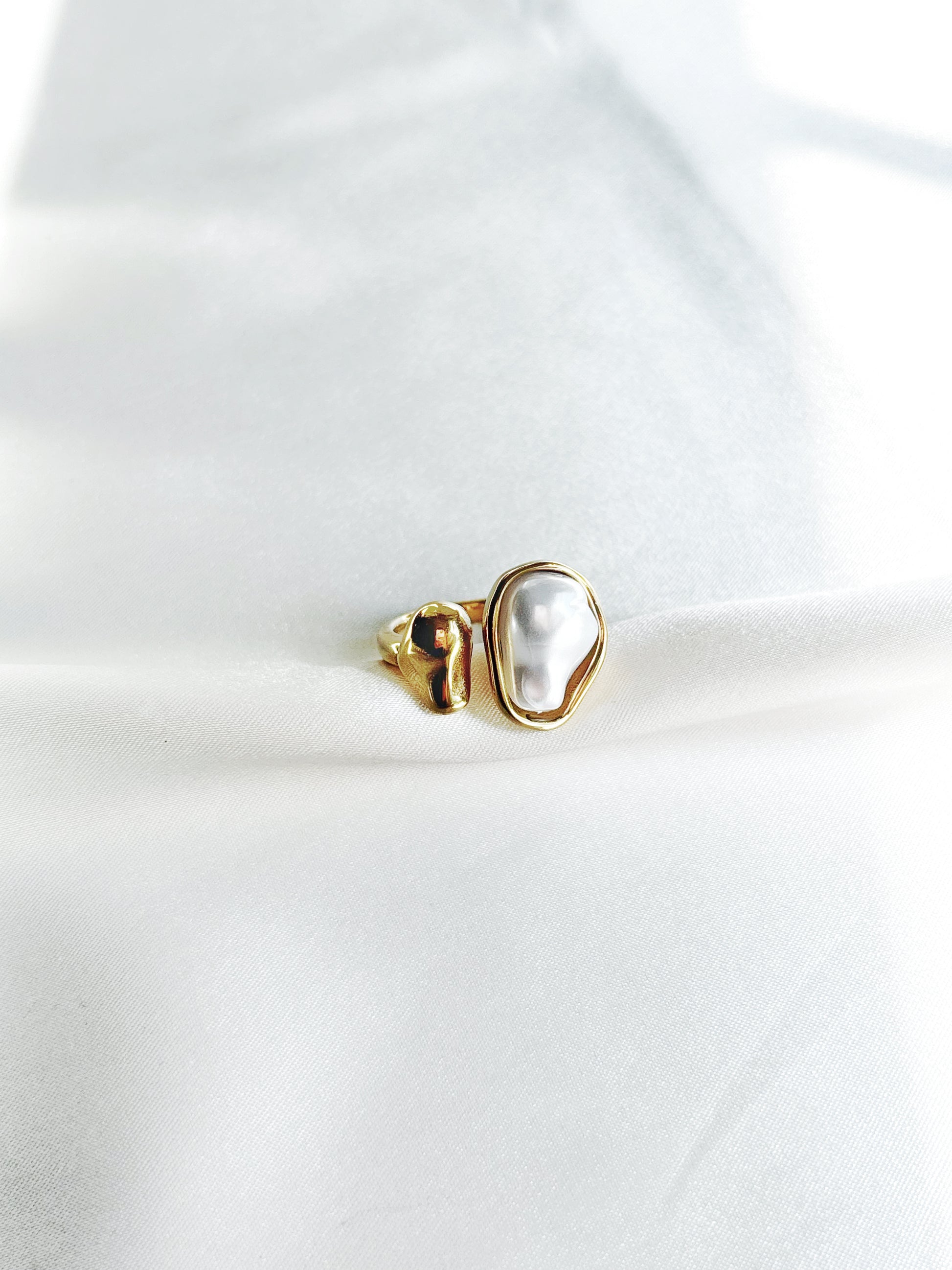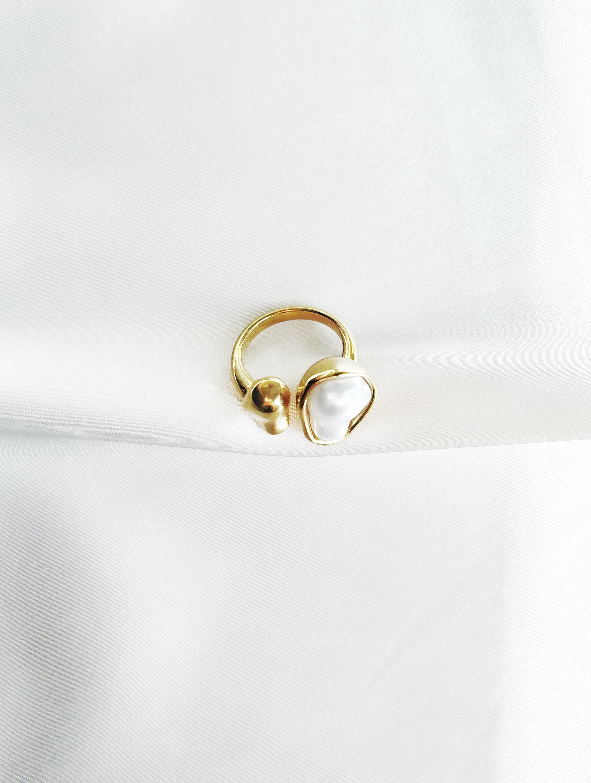 • 14k gold plated adjustable pearl ring