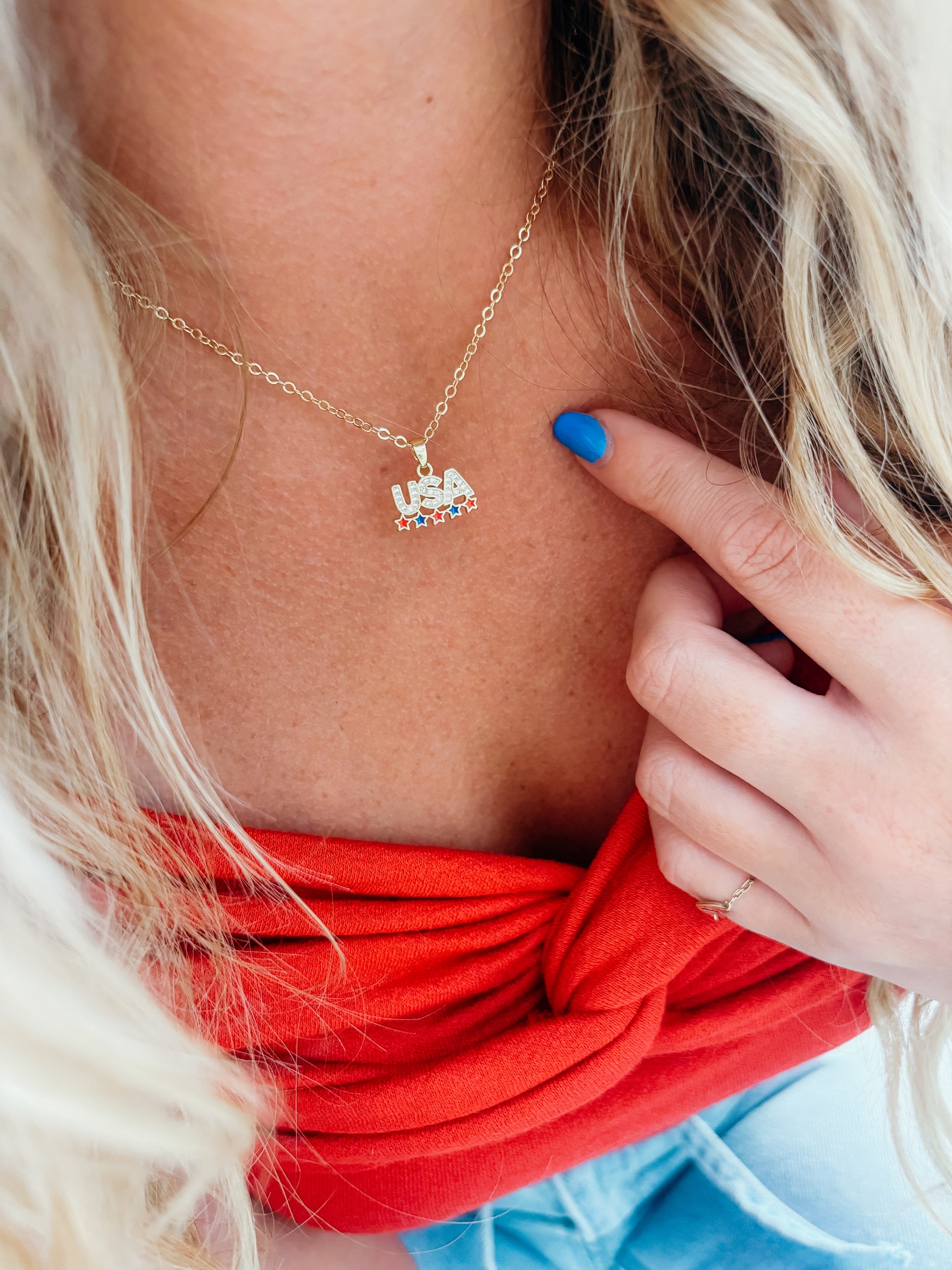 • 14k gold plated chain with USA charm