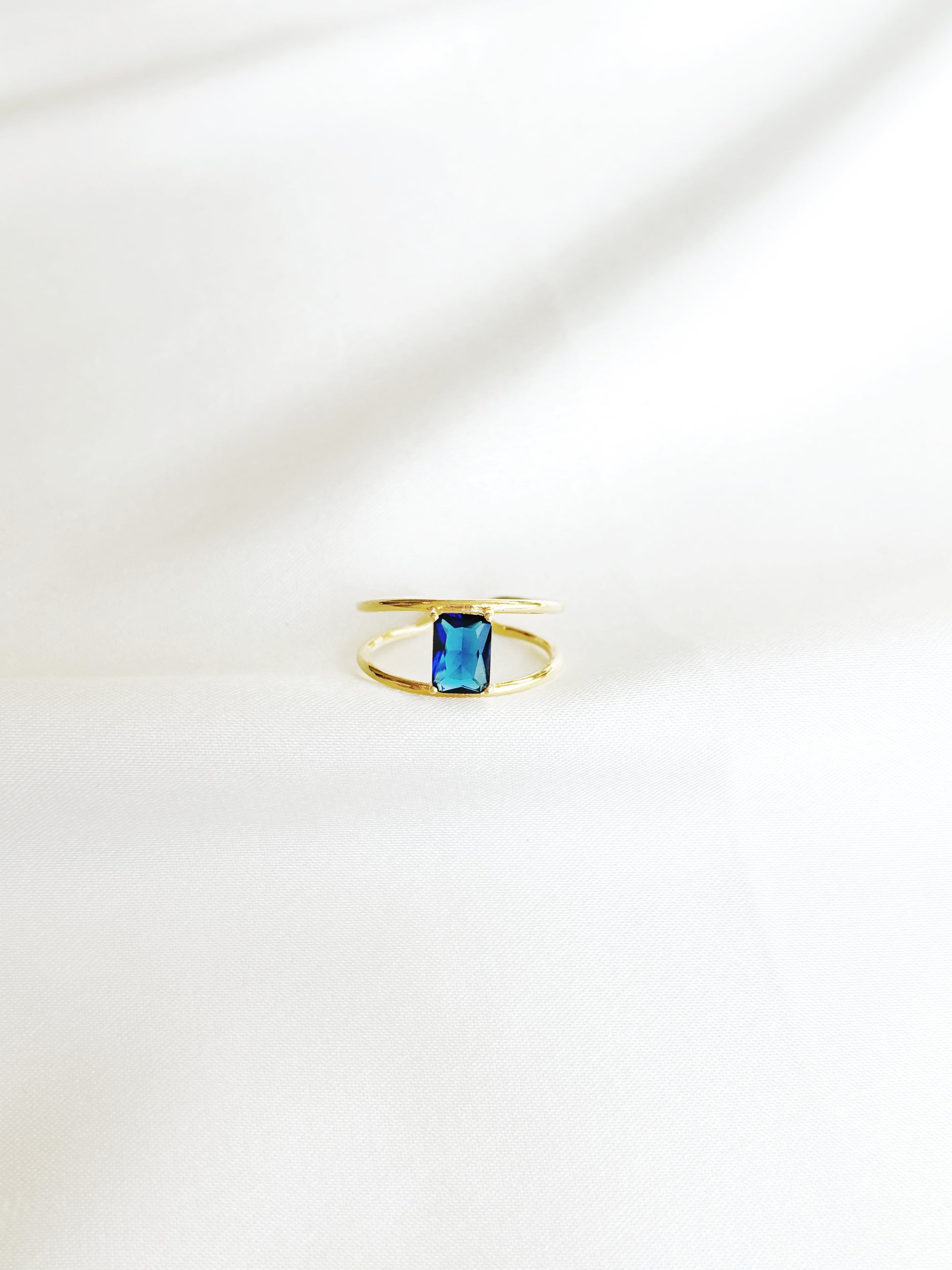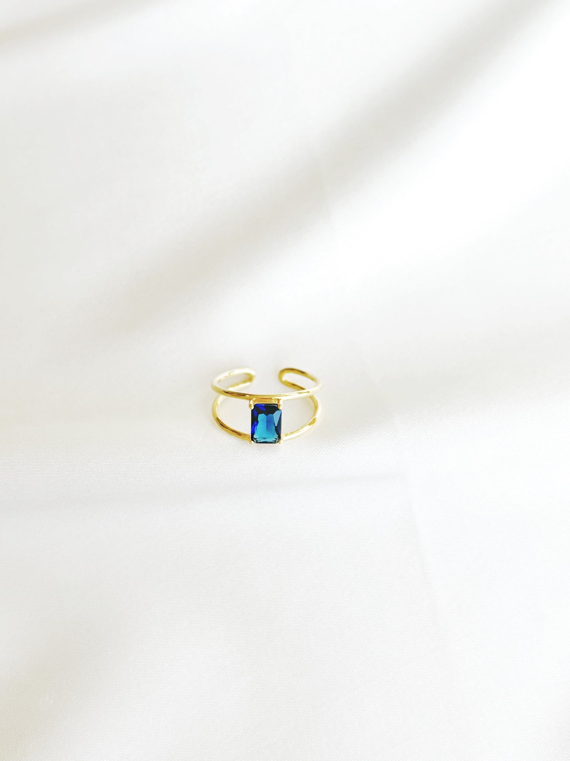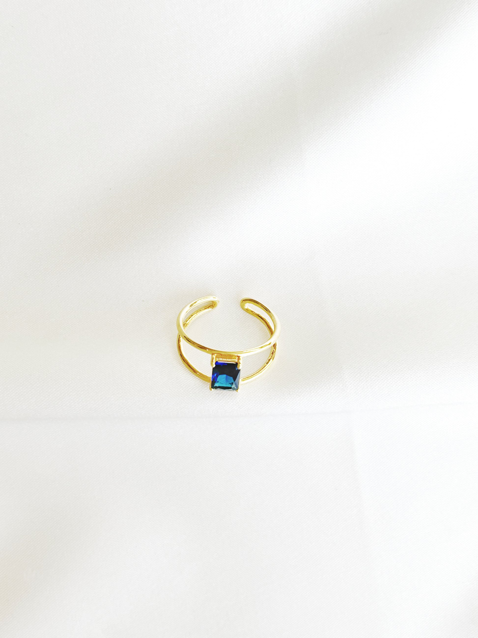 • 14K gold plated adjustable blue cz stone ring